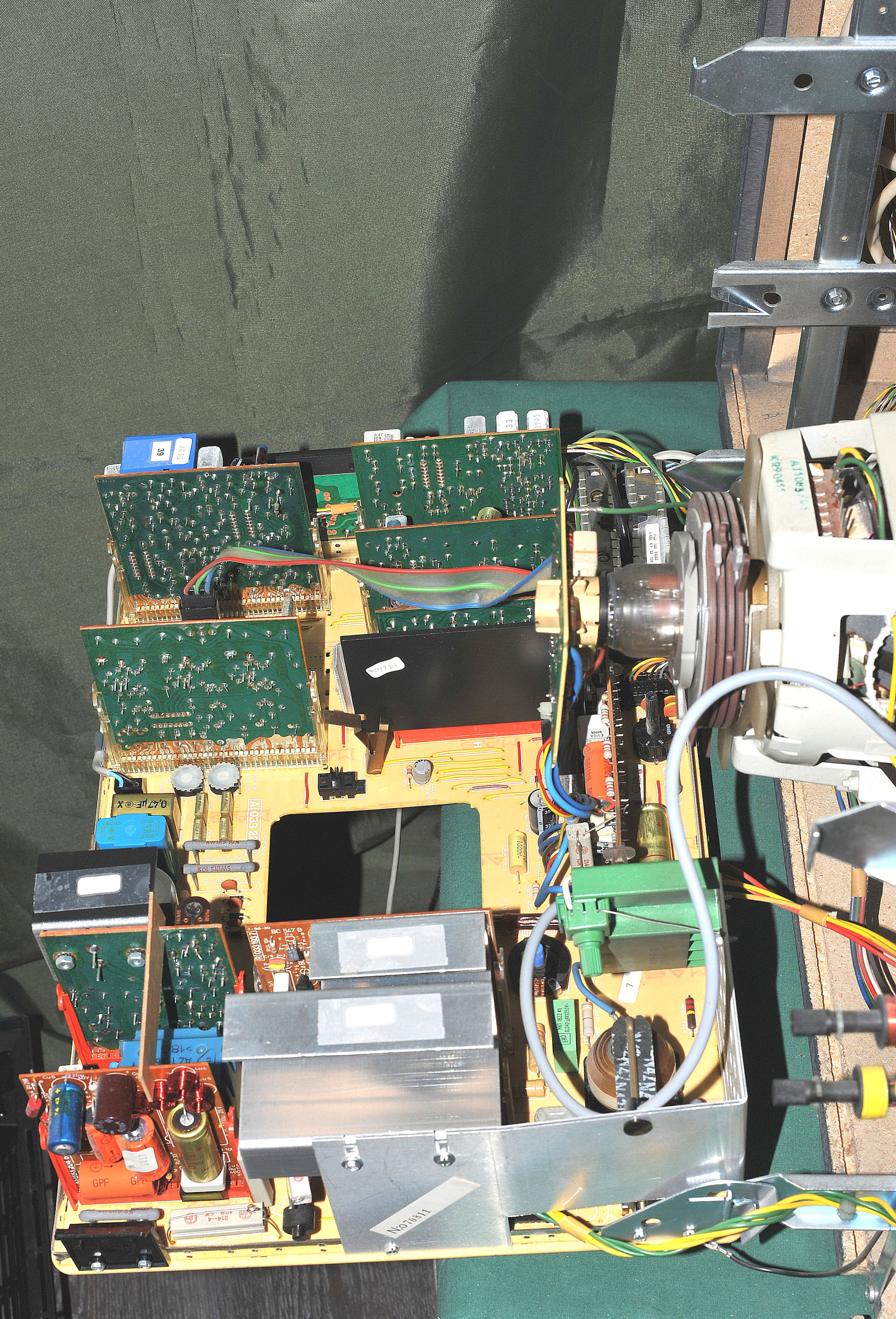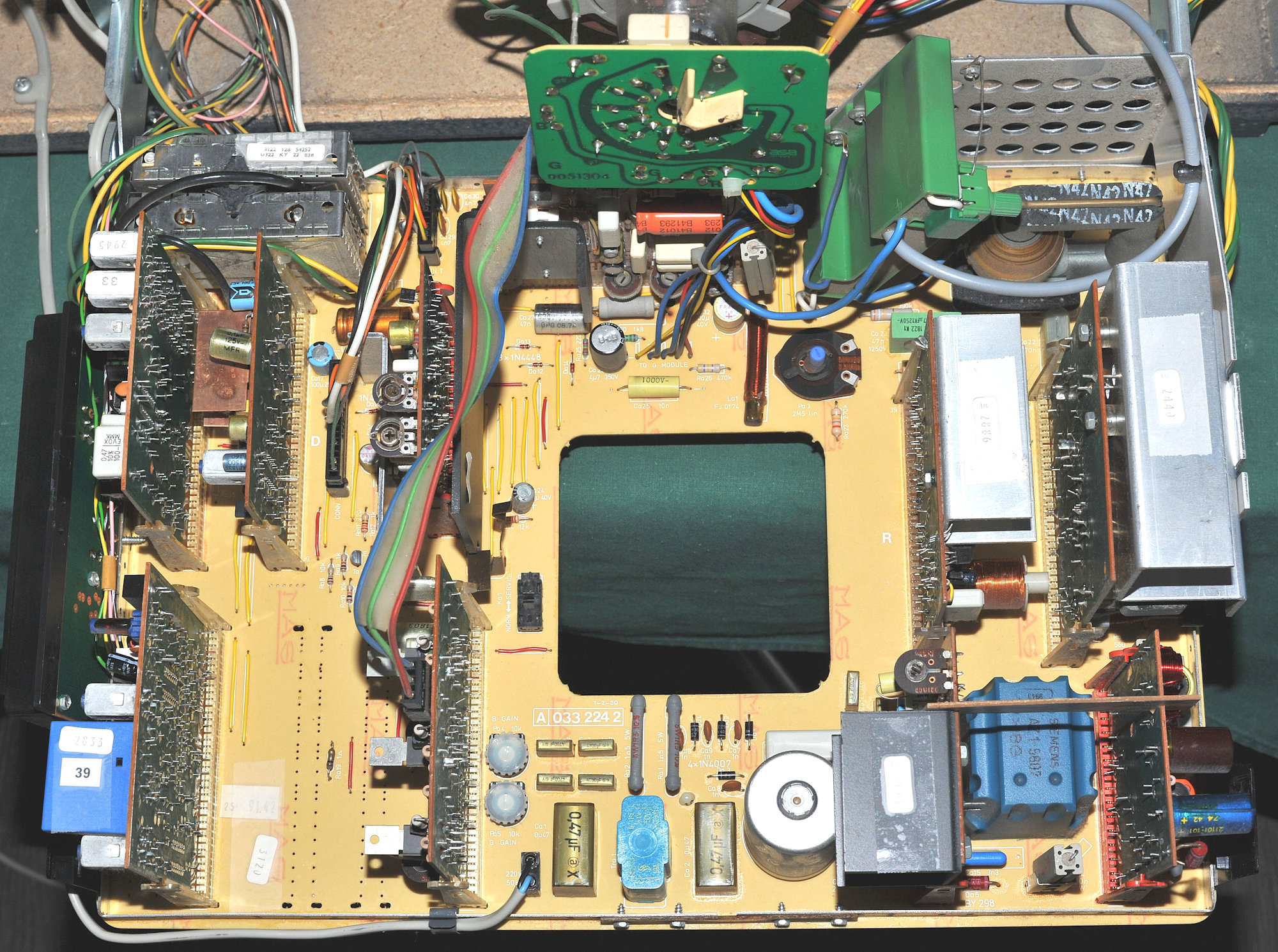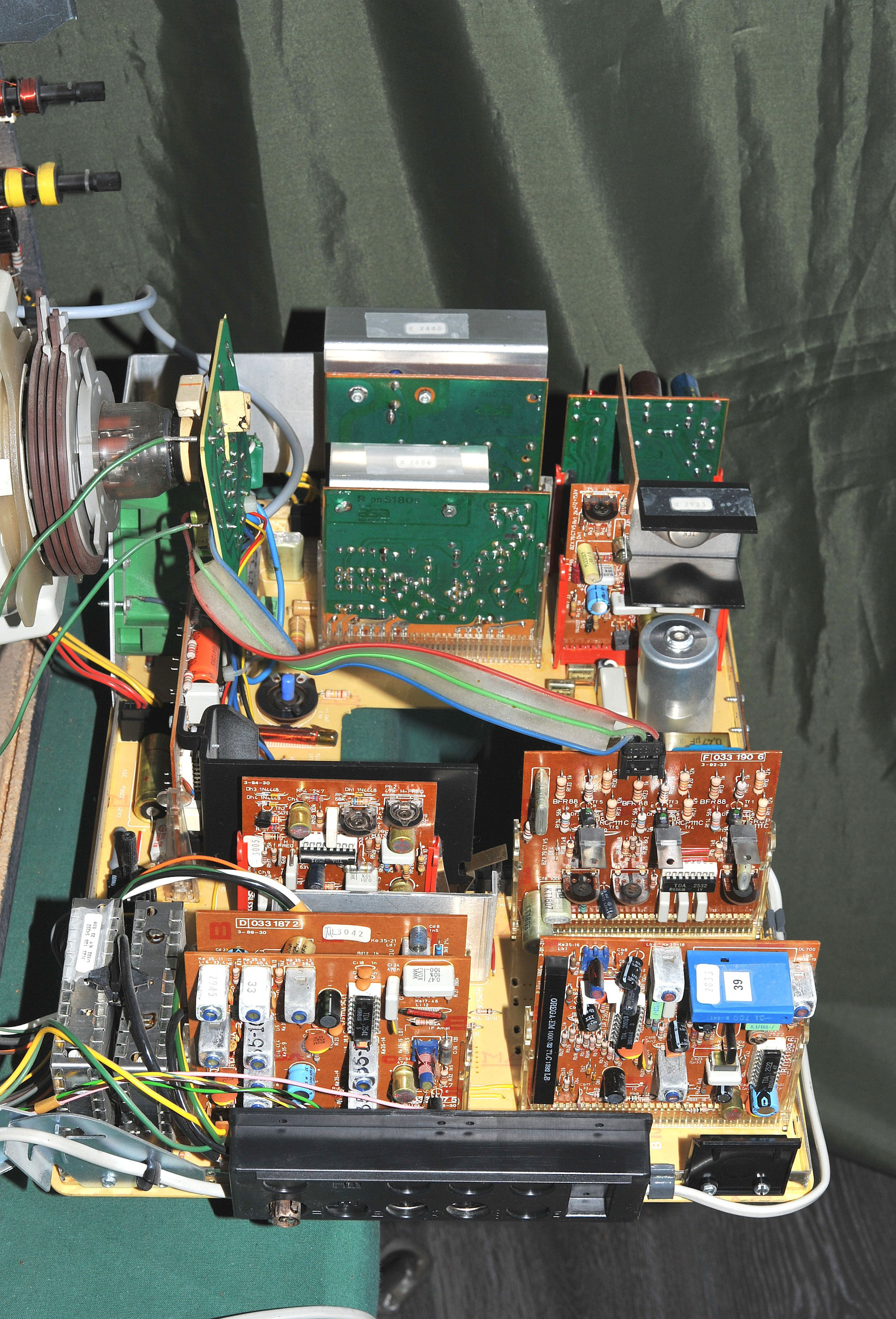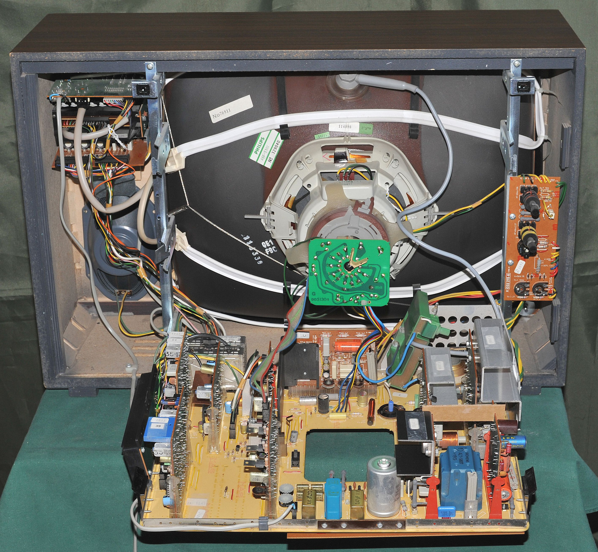 Kojeisto: Kuvaputki Heliorama in-line, -- Modulit 12 kpl. -- Verkkoeristetty kojeisto. -- Käyttöjännite 220 V / 50 Hz. -- Sallittu jännitevaihtelu 170-260 V. -- Tehontarve 110 W. -- Kuvavälitaajuus 38,9 MHz. -- Säädinyksikkö: VHF-kanavat 2-12, UHF-kanavat 21-69. -- Kuvanauhurivalmius (AV). Ohjelmamuistien määrä 8. -- Elektroninen ohjelmamuisti. -- Elektroninen kanavaviritys. -- Automaattinen hienoviritys (AFC). -- Digitaalinen ohjelmanumero. -- Automaattinen sävykkyydensäätö. -- Käyttösäätimet: Kirkkaus, Sävykkyys, Värikkyys, Äänen voimakkuus, Äänen sävy, korkeat, Äänen sävy, matalat, kaikki nämä säätimet ovat kierrettäviä. -- Normalointinäppäin on painettava. -- Äänikanava: Kaiutin, eteen suunnattu: 10 x 18 cm, 5 W. -- Toistoalue, 55-15000 Hz, -- Ääniteho 3 W / 8 ohmia. -- Vakioliitännät: Antenni 75 ohm. -- Kuvanauhuri (RF). -- Lisäkaiutin, FIN 41529, 5 W / 4 ohmia. -- Kuulokkeet, DIN 45327, 8-2000 ohmia. -- Ääninauhuri, DIN 41524, 0,5 V / 10 kohm. -- Lisävahvistin, DIN 41524, 0,3 V / 100 kohm. -- Lisälaitteet: SECAM-värimoduli, OIRT-äänimoduli, Videotaajuinen kuvanauhuri, -- Kotelo: Leveys 655 mm, Korkeus 447 mm, Syvyys 210 + 150 mm. -- Paino 27 kg. -- Palisanteri.